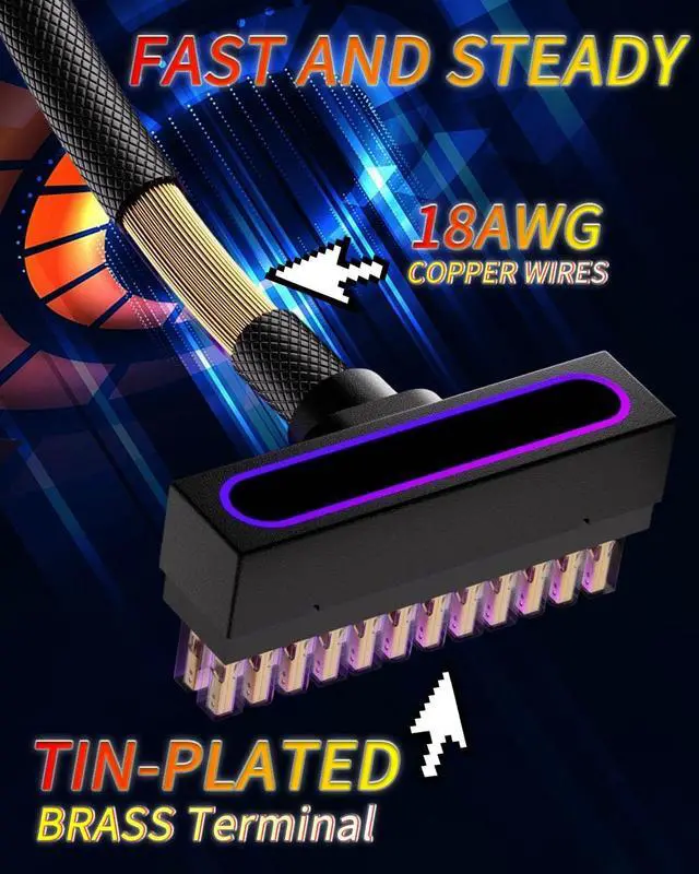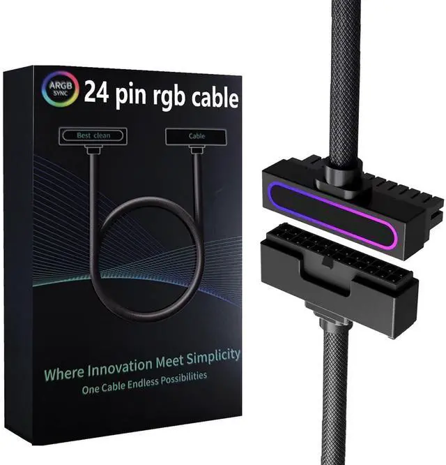 24PIN PSU Extension Cable,ARGB PC Cable with 5V 3Pin,18AWG 90 Degree Right-Angle Design for Power Cable Extension,Male-to-Female Connectors for PC Power Cord(30CM-Black)
