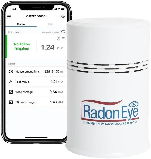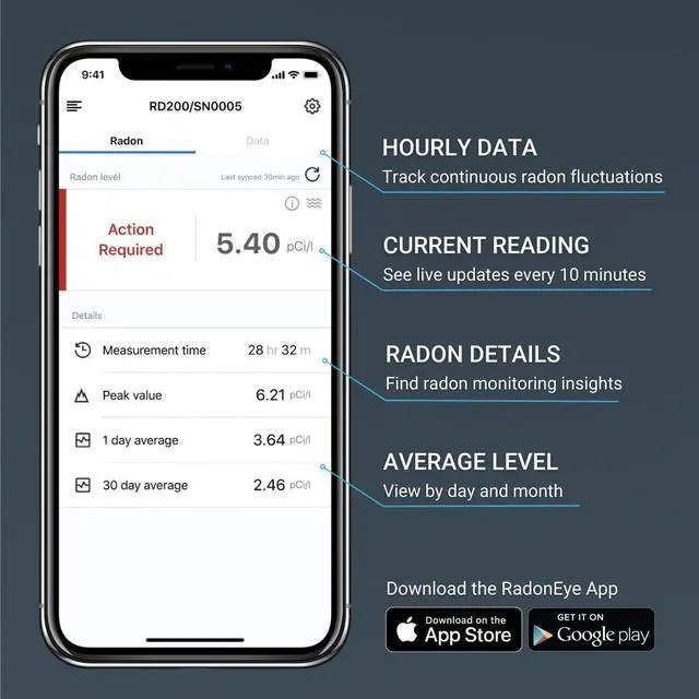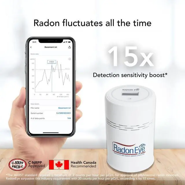 Ecosense radon detectors capture radon levels in real-time, reading every 10 min and providing rolling hourly averages to effectively track radon fluctuations and observe the effects of mitigation efforts.
