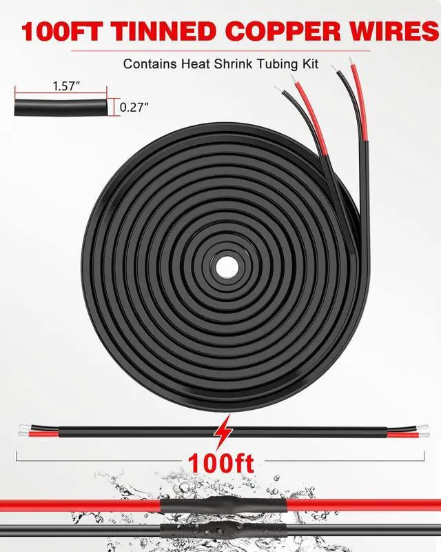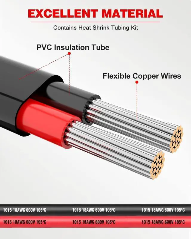 BUILT TO LAST: 2 Conductor 18 gauge wire is insulated with high-quality PVC, excellent chemical and oxidation resistance, 56 packs of heat-shrinkable tubes & 20 packs of cable ties. These tubes can Protect wires from damage caused by abrasion and moisture