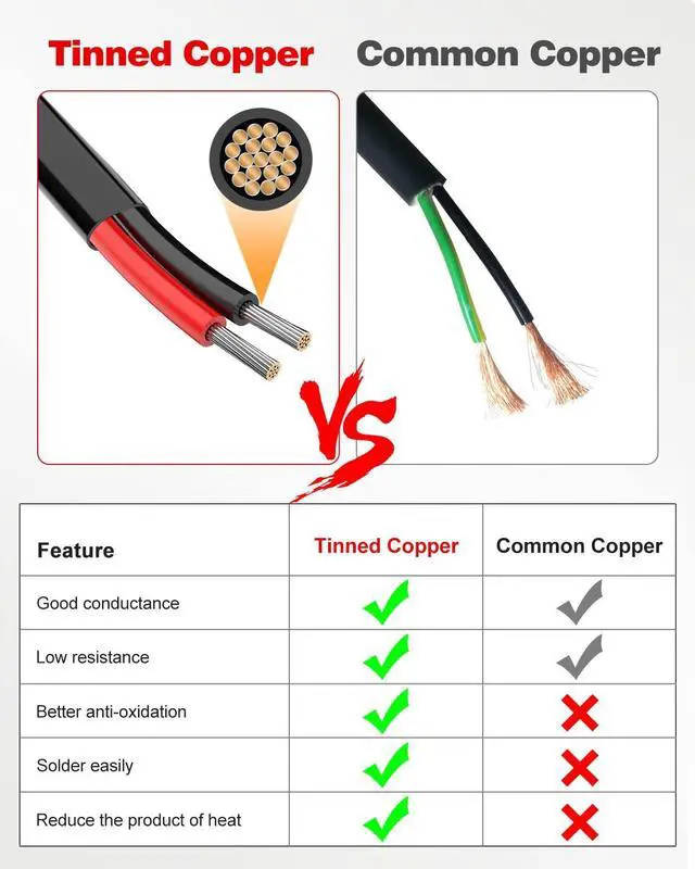 HIGHLY CONDUCTIVE: NAOEVO electrical wire uses high-precision oxygen-free tinned copper, The outside diameter of the Jacket is 2.7 mm Typ, and 41 strands of 0.14 mm tinned copper wire are inside each circuit, has lower resistance and higher conductivity