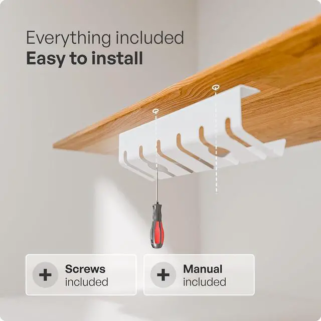 • EASY ASSEMBLY - Flat head screws are included. Simply place the cable management tray under your desk and screw in the screws. This way the under desk cable management is mounted very fast. Also compatible with monitor mount