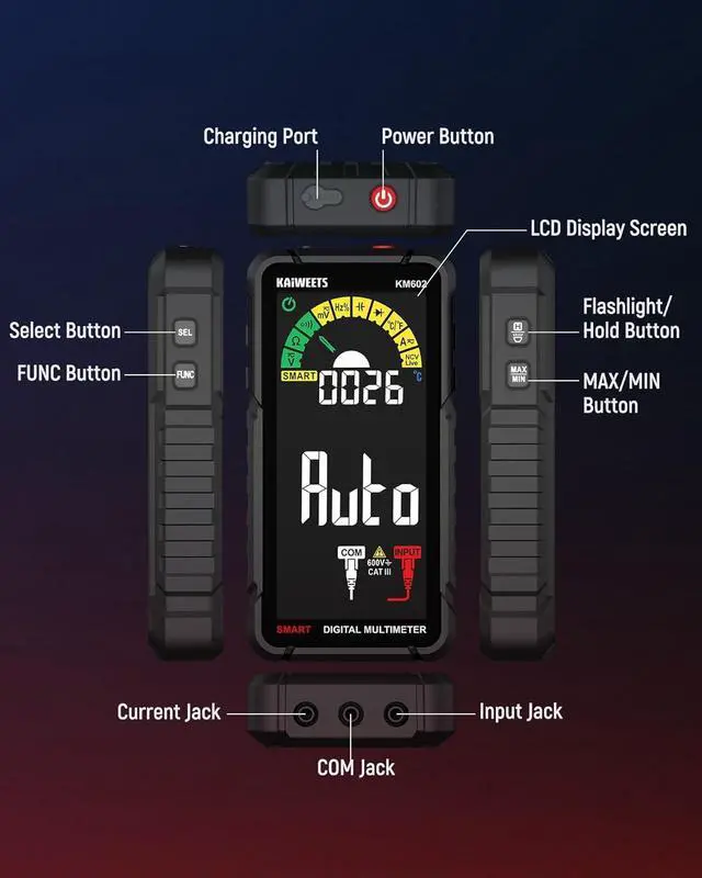 In SMART mode, the meter automatically detects and measures AC/DC voltage, resistance, and continuity.