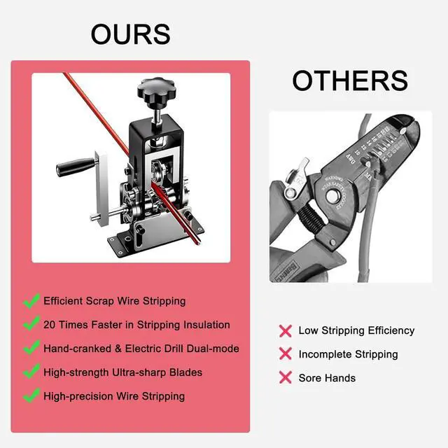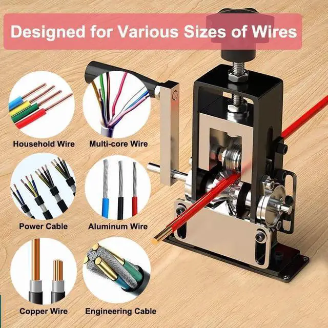 Easy to Operate: Use the adjustment knob to quickly and easily set the blade height to your exact needs, insert the copper wire into the appropriate hole, and turn the hand crank or power it with a drill to strip the insulation in one go - no more manual scraping