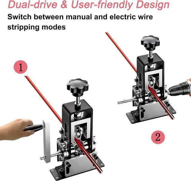 Dual-mode Operation: This electric wire stripper is equipped with a detachable handle driver, which is smooth and convenient to operate. You can also connect it to an electric drill to automatically strip the wire, thereby increasing the speed of operation