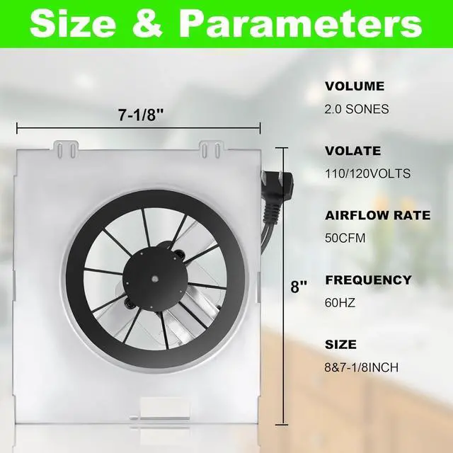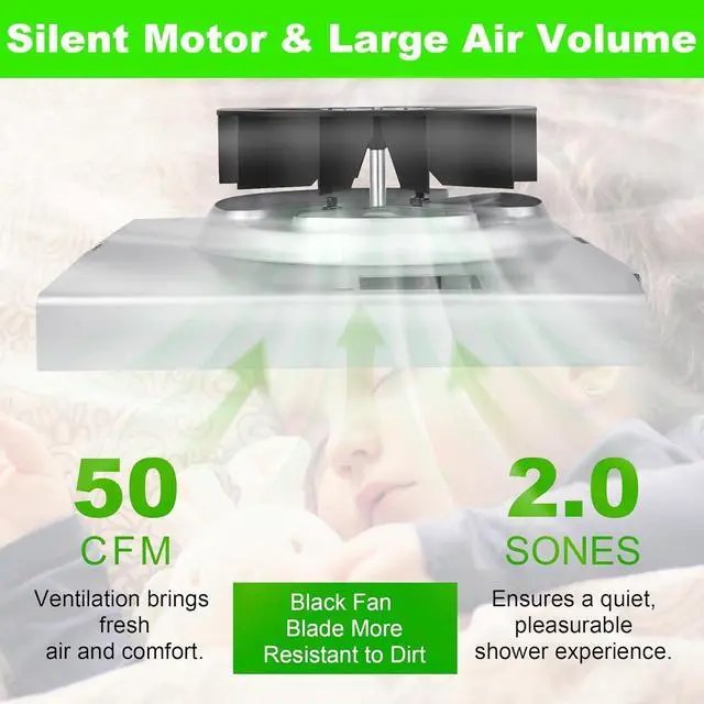 Performance Specifications: 50 CFM airflow at 2.0 sones noise level