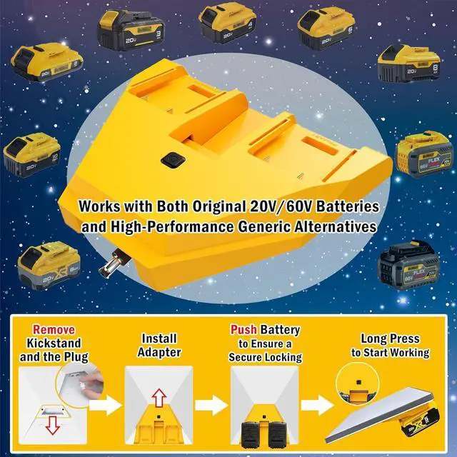 [Unlock the Universal Power of De.Walt Ecosystem]: Designed to connect a wide range of De.Walt 20V/60V series batteries and high-performance compatible batteries to your starlink mini. If you already own de.walt batteries, you already have a powerful, rechargeable starlink mini power bank.