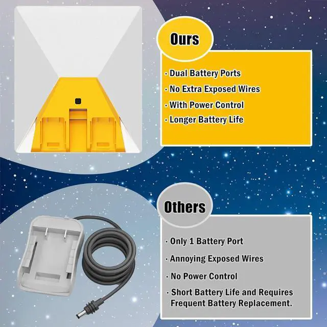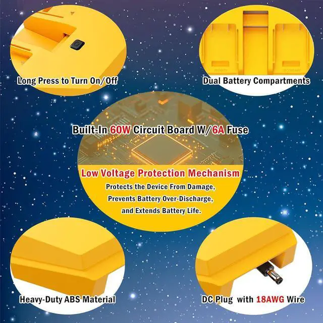 [Unlock Portable Power for Starlink Mini]: Harness the power of 1 to 2 De.Walt 20V/60V MAX batteries to power your Starlink Mini anywhere with our starlink mini de.walt battery adapter(Pls Note: Batteries NOT Included). Say goodbye to limited runtime and enjoy truly mobile satellite internet.
