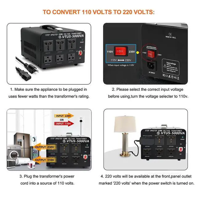 5000 Watts Step Up/Down Voltage Transformer Converter. Step Up Voltage from 110-120 Volts to 220-240 Volts. Step Down Voltage from 220-240 Volts to 110-120 Volts.