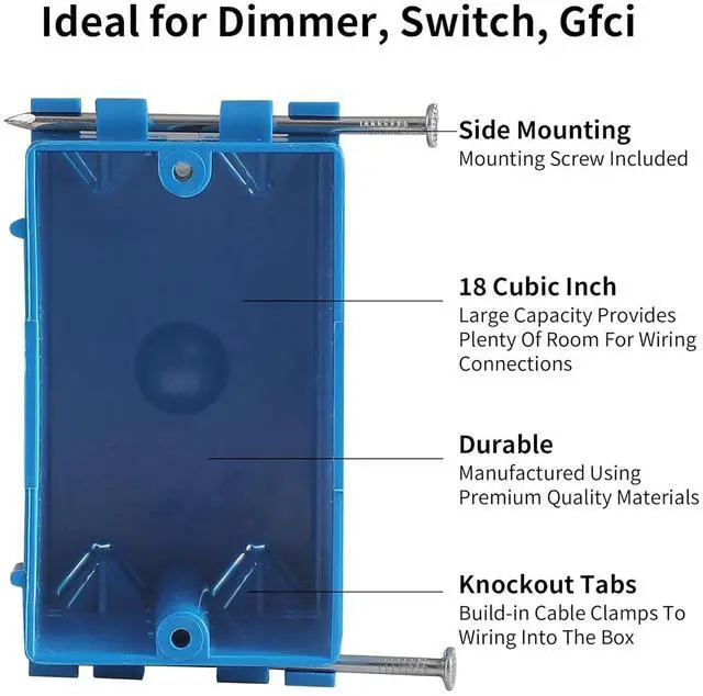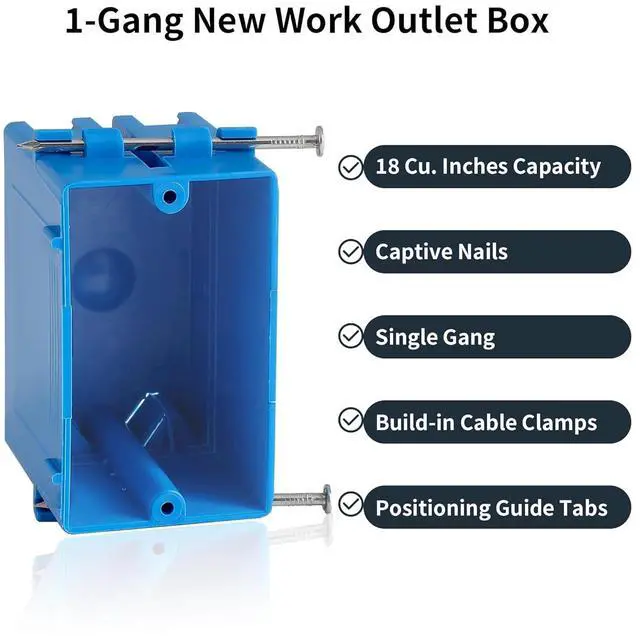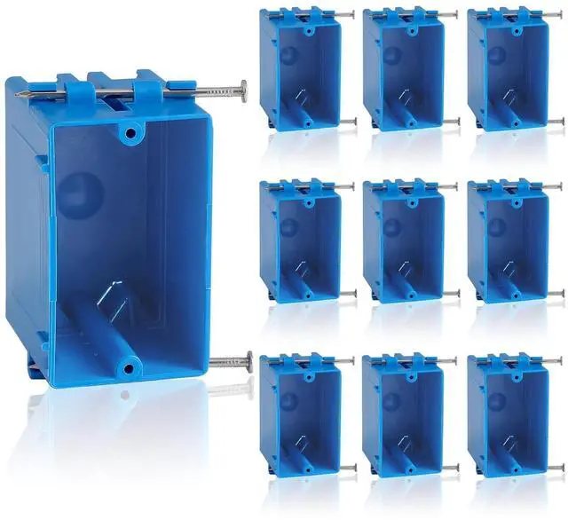 Easy To Use: This plastic electrical junction box is conveniently designed to make life easier for the electrician. With captive screws and positioning tabs, it's easy to simply hammer into the stud. This blue electrical box has four removable tabs to allow wiring in and out if the box
