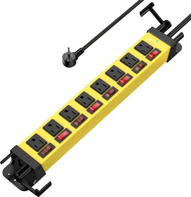 This mountable power strip is crafted from 1.5mm extra thick aluminum alloy housing and reinforced plastic covering, offers strong wear resistance, fire protection and impact prevention. It's strong enough to handle tough jobs in garage, workshop, office, home, garden, school, etc. The 14AWG SJT grade wire supports power up to 1875W and better corrosion and oil resistance.