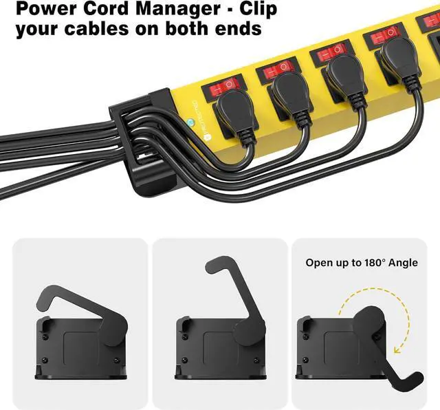 This individual switch power strip comes with a right angle plug and cord managers on each ends, help organize your wirings for appliance and declutter power cords. The 45° angled flat plug keeps the cord close to the wall, hides easily in tight spaces and behind furniture like bookcases or couches and won't take up too much spaces.