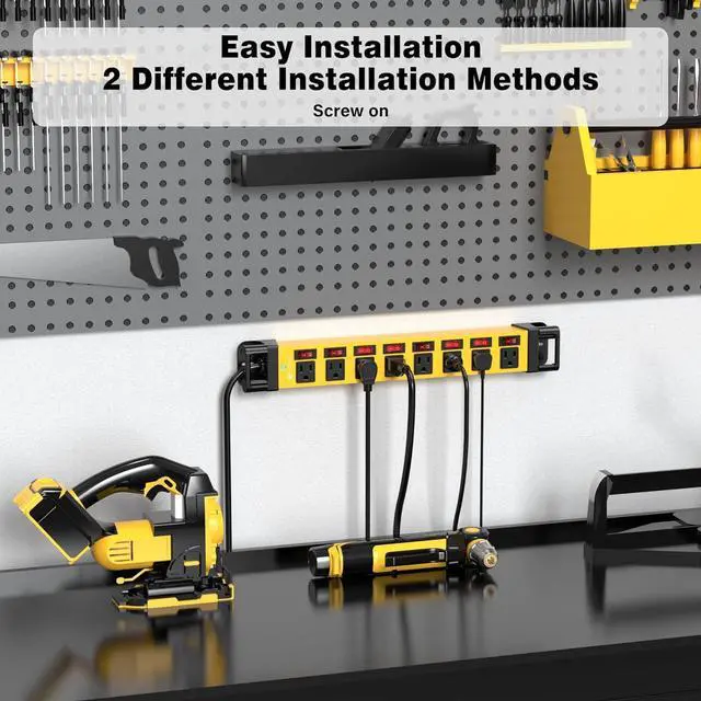 8 individual switches on this heavy duty power strip so that you can turn on and off devices independently, no more hassle of plugging and unplugging devices. Save effort and money. It suits nicely for a power tool battery charging station on your workbench.