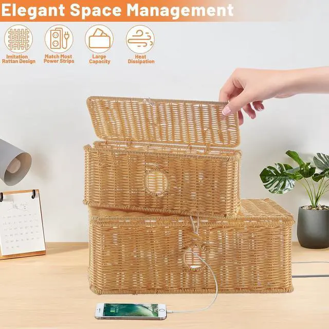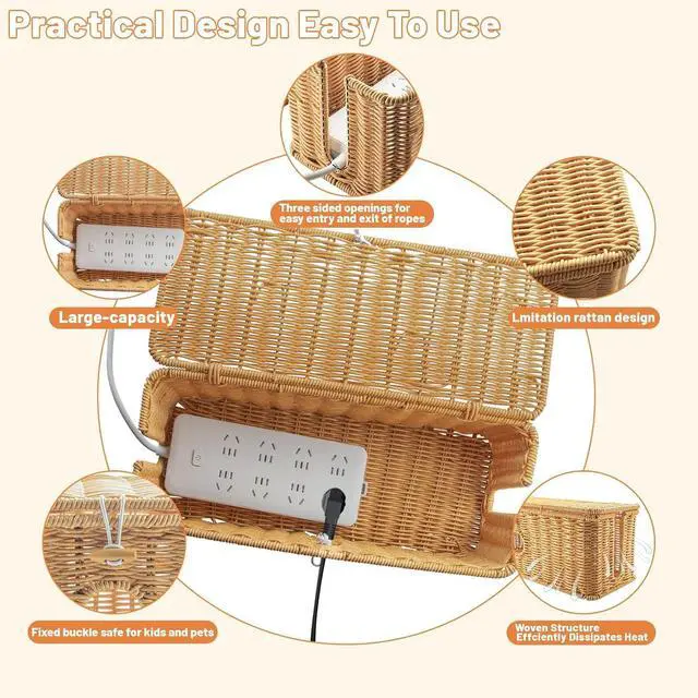 EFFICIENT HEAT DISSIPATION:Pure Hand-Woven Imitation Rattan Craft Cable Organizer,Which Has Excellent Heat Resistance And Efficient Heat Dissipation. Its Unique Weaving Process Not Only Improves The Overall Aesthetic But Also Elevates Your Space With A Delightful Touch, Keep Cables Organized,Helping To Maintain A Clutter-Free And Tidy Space.
