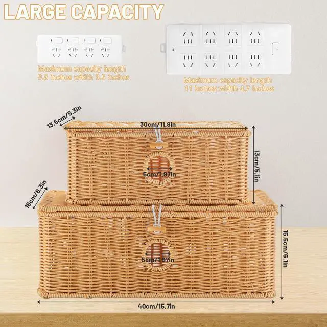 LONG LASTING PERFORMANCE:Our Power Cord Management Box Is Handmade From High Quality Synthetic Rattan Material, Durable And Durable, The Charging Basket Is Tightly Woven, Sturdy Structure, Not Easy To Tear Or Collapse, Can Effectively Organize And Protect Power Cords, Prevent Pets From Tearing Power Cords, Prevent Children From Accidentally Touching Power Cords Or Tripping Over Cluttered Power Cords, Protect Your Family's Safety, Can Be Used For A Long Time.