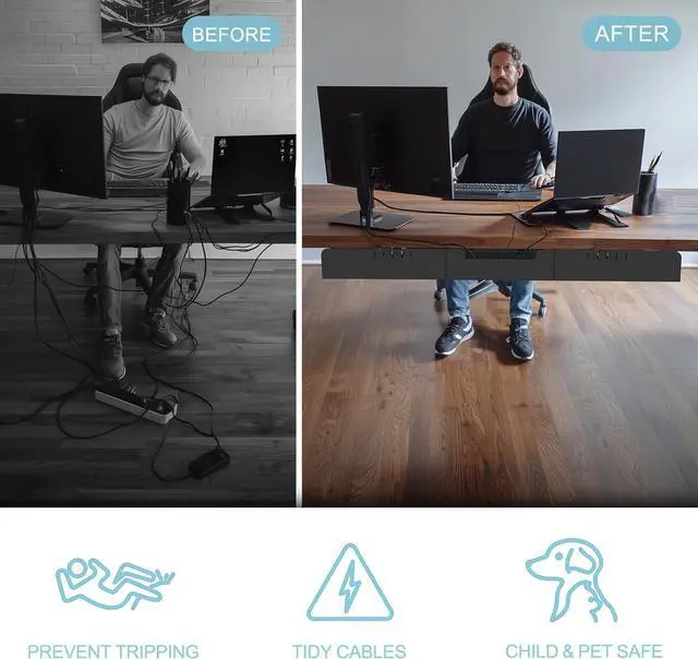 KEEP YOUR DESK CLUTTER-FREE & ORGANIZED Create a cleaner, safer workspace with this under desk cable management tray. Easily hide messy wires, cords, and strips perfect for home offices, gaming setups, and workstations