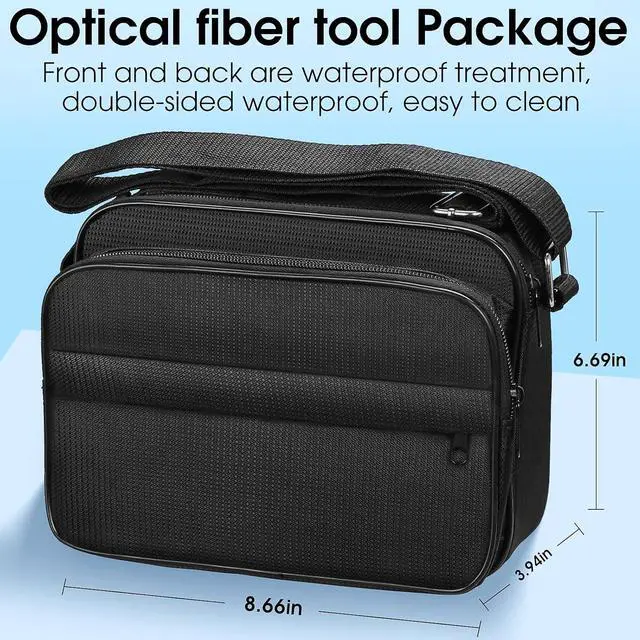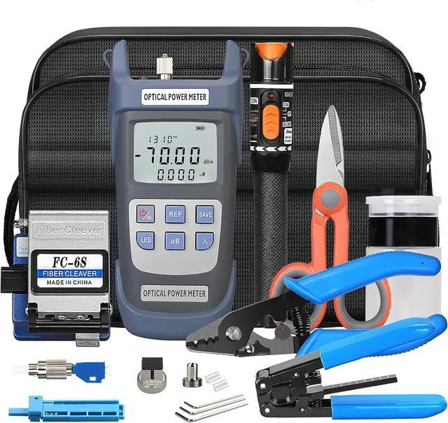 1 FTTH equipment accessories: 11 in 1 assembly FTTH tool kit includes OPM, fiber optic cutter, fiber optic stripping pliers, black handbag, fixed length track, clamp, etc