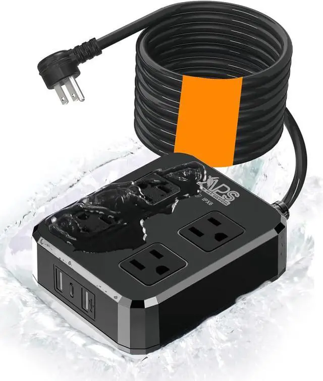 110FT Extension Cord2Wide Space3Overload Protector4Waterproof IPX65Shock ProtectionWater that flows into the sockets will flow out through the drainage holes on the back.