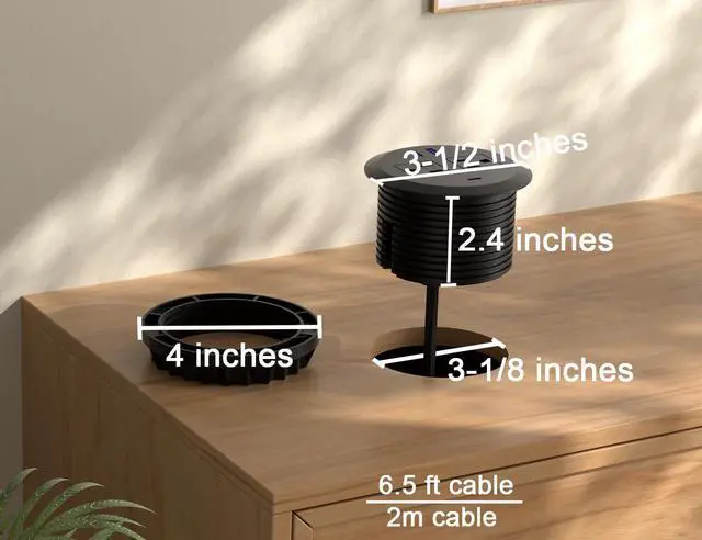 Super easy installation - Insert the desktop power grommet into the 3-1/8-inch desk grommet hole,rotary locking ring