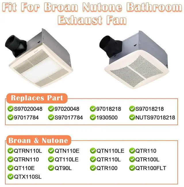 Fit For Broan Nutone Exhaust Fan Models - QTRN110L, QTN110E, QTN110LE, QTR110, QTRN110, QT110LE, QTR110L, QTR100L, QT110E, QT90L, QTR100, QTR100FLT, QTX110SL. Replaces Part Number: S97020048, 97020048, 97018218, S97018218, 97017784, NUTS97018218, S97017784, 1930500.