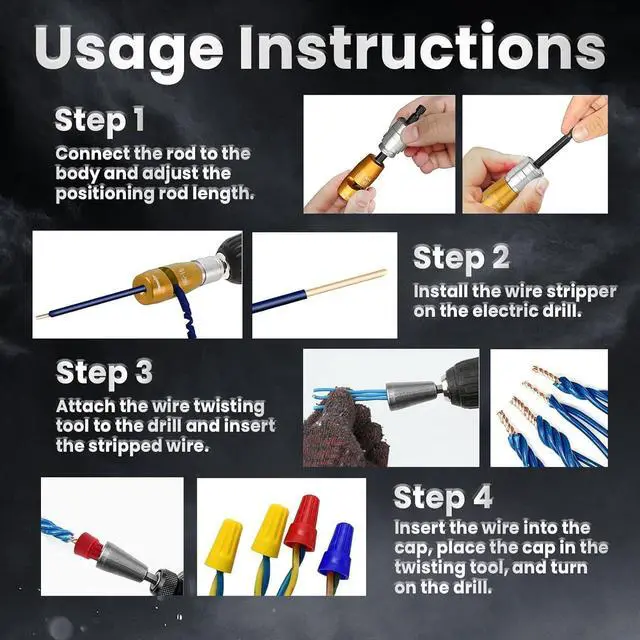 [New Upgraded Wire Stripper for Drill] Streamline your wiring tasks with this advanced wire twister tool for drill. This automatic wire stripper quickly strips 14-6 AWG solid core wires in seconds. Compatible with most electric drills, it ensures fast, precise wire prep, boosting efficiency and reducing fatigue. A must-have electrical accessory!