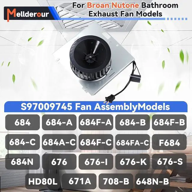 Fits Models: S97009745 motor assembly is fit for Broan Nutone Bathroom Exhaust Fan Models 676, 684N Exhaust Fans, 684, 684-A, 684F-A, 684-B, 684F-B, 684-C, 684A-C, 684F-C, 684FA-C, F684, 684N, 676, 676-I, 676-K, 676-S, HD80L, HD80, 671A, 708-B, 648N-B.bathroom fan
