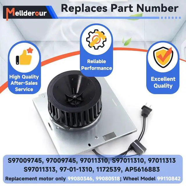 Replaces Part Number: S97009745, 97009745, 97011310, S97011310, 97011313, S97011313, 97-01-1310, 1172539, AP5616883. Replacement motor only 99080346, 99080518; Wheel Model 99110842.