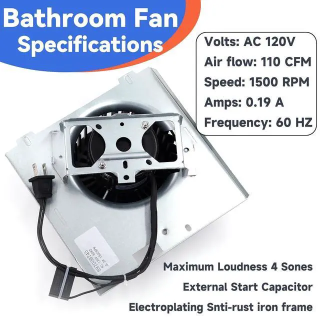 Reliable and Durable: Our bathroom fan products are made of high-quality materials and can provide 110 CFM air flow. The efficiency is increased by at least 60%, and the noise level is only 4. Equipped with quick start capacitor to improve efficiency After strict testing before leaving the factory, it meets the durability and reliability of OEM level standards.