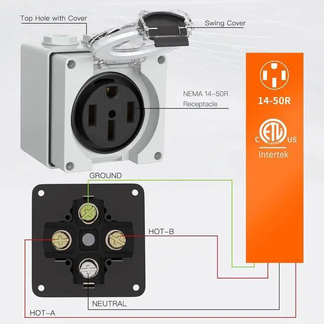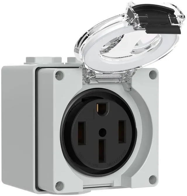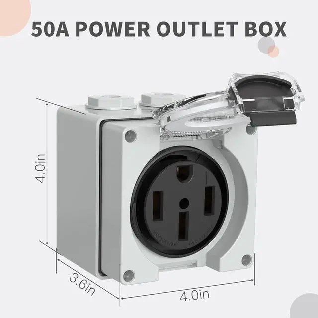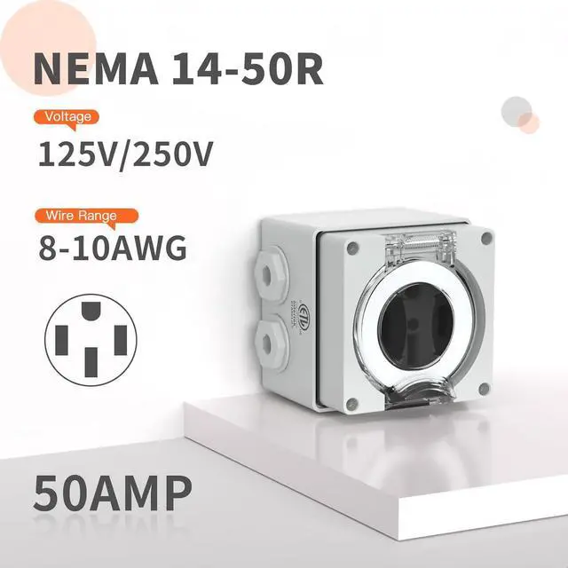 SpecificationsNEMA 14-50R Receptacle With Protective Box Power Socket.Compatible With 50A Welding Machine/EV/RV Cord