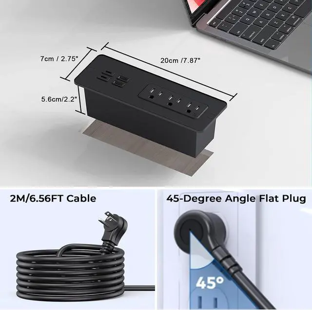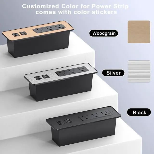 Unique Drawer OutletHaiaoyyds recessed power strip comes with an extra 2 color stickers(Woodgrain and Silver), You can customize the color based on your desk or decorate. Provide more choices for home office hotels. Also equipped 2pcs caps to hidden screws hole, perfectly hidden furniture outlets.