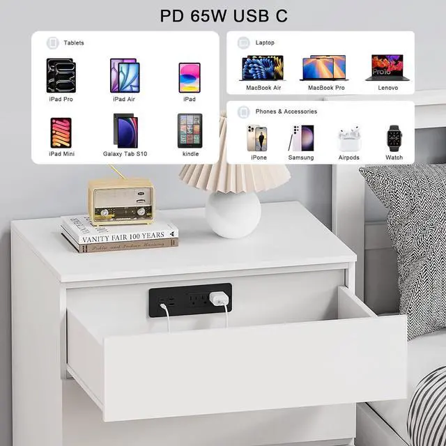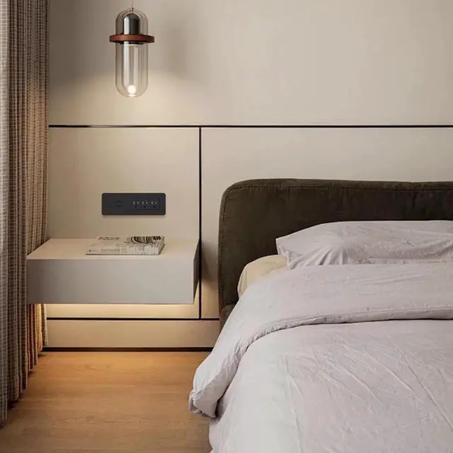 7 IN 1 Recessed Power StripRecessed outlet equipped with 3 AC outlets(125V/15A), PD 65W USB C ports, QC3.0 USB A ports. Multiple outlets for versatile use, charge up to 7 devices simultaneously. Furniture Outlet for Nightstand/End Table/Side Table.