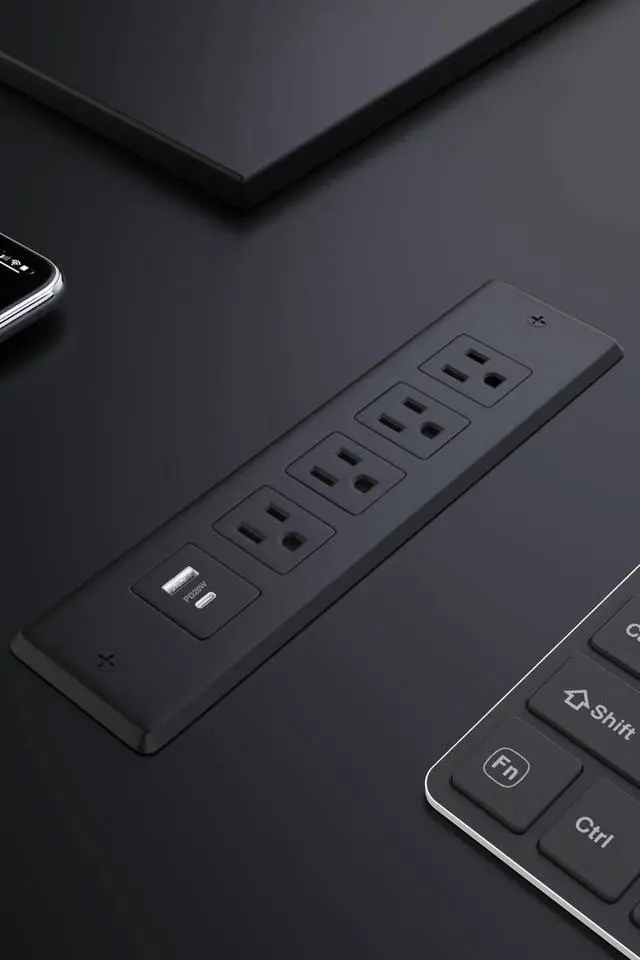 All-in-One Recessed Power - 4 AC outlets,USB-A port,and USB-C port power everything on your desk from a single desk outlet