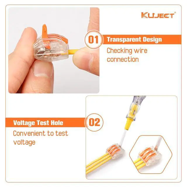 User-Friendly Design: Kuject electrical wire quick connectors feature a transparent appearance and voltage test hole design, making it easy for you to inspect your wire connections for reliability and convenience