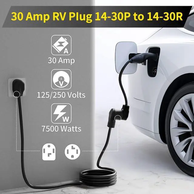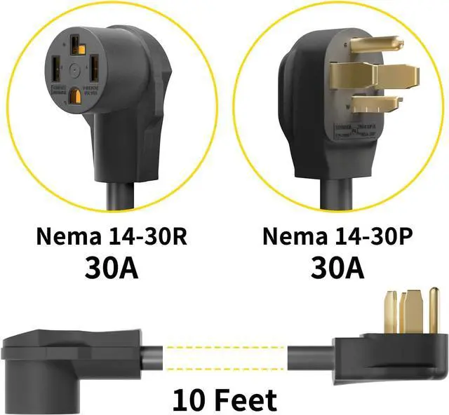 Produc Specification: 30A, 120/240V, max wattage 7500 watts, 10 feet,STW power cord with 14-30P male plug and 14-30R female receptacle.