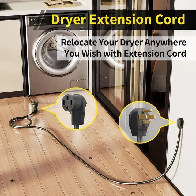 Dryer & Power Cord: This power extension cord is 10 feet long,which provides sufficient length,ideal for dryer power cord extension. So,there is no need for you to spend time moving your dryer or electrical outlet anymore.