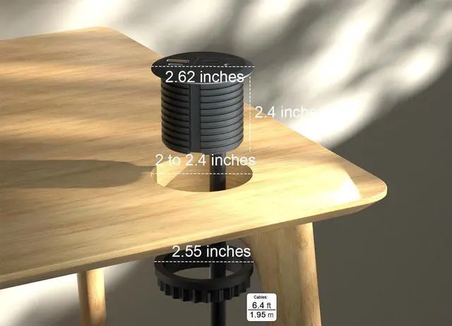 Super easy installation - Insert the desktop power grommet into the 2-inch desk grommet hole,rotary locking ring