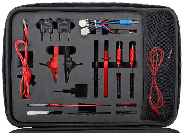 2. This multi function auto circuit tester contains 90 commonly used leads and connectors in a convenient carrying and storage case. This complete kit turns testing and measuring devices into powerful automotive diagnostic tools for fault-finding on the increasing number of sensors, actuators, and electronic circuits found on today's vehicles. The light-weight case allows the leads to be sorted and stored conveniently