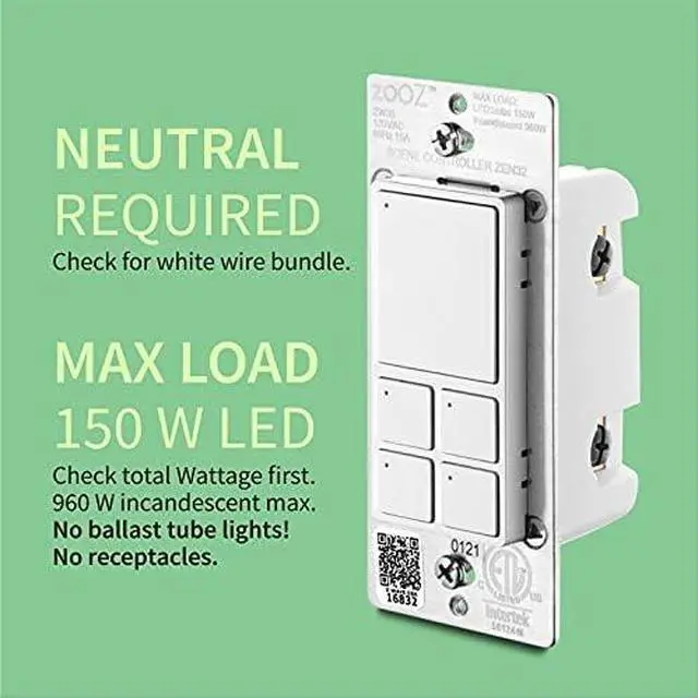 EASY INSTALLATION: Clear diagrams and 7-day a week support included. No side tabs and just 1.1" deep to fit shallow and crowded switch boxes. NEUTRAL WIRE REQUIRED (check before buying). The device is ETL certified and conforms with North American safety standards. Backed by a 1-year warranty, register your product for an extended 5-year warranty.