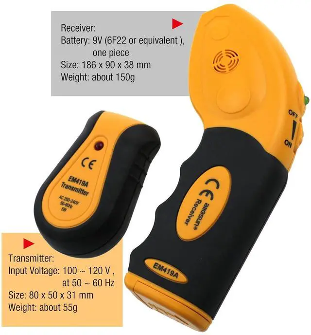 Input Voltage: you must have power on the wire you are trying to trace, circuit Breaker Locator is designed for operation at 100-120 Volt AC, 50-60Hz,the actual input voltage required is marked on transmitter.It is much easier to find the right switch with this device. Power Supply is 1 X 9V(6F22 or equivalent ) battery.(Not Included).