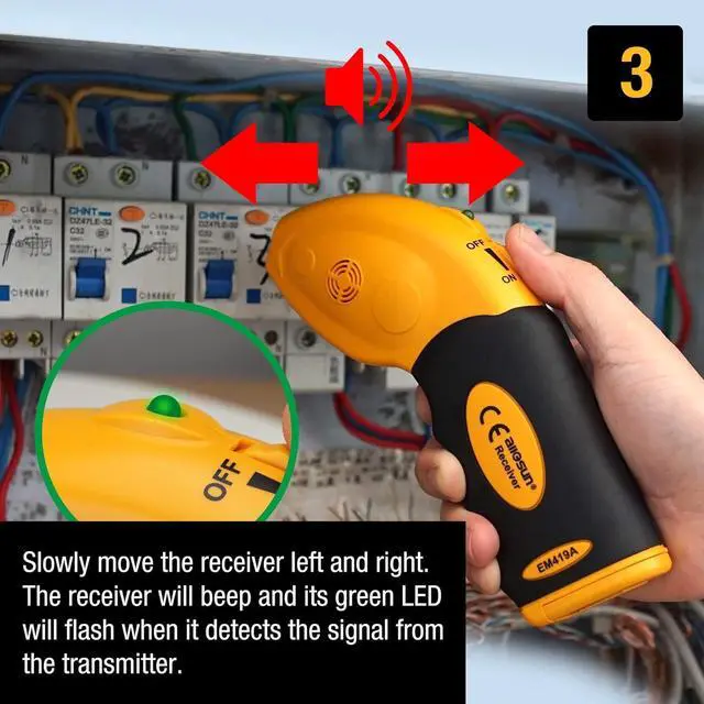 Automatic & Led Flash: Circuit Breaker Tester, automatically and quickly find correct breaker,The transmitter injects a signal onto the circuit, which can be detected by the receiver.The receiver will beep and its green,LED will flash when the signal is detected