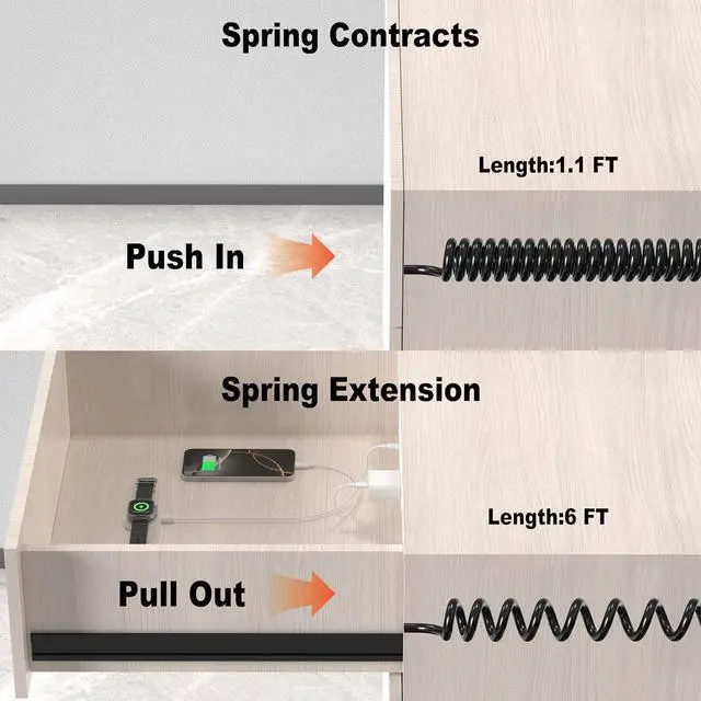 Clutter-Free Spring Cable Power cable with spring shape design: