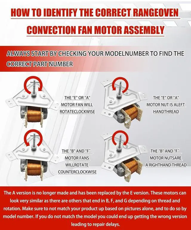 Packaging contentPackage includes 1 x DG96-00110E DG96-00110A Electric Range Oven Convection Fan Motor Assembly, 1 x Motor mounting plate,Motor parameters120V | 60Hz | 31W | Convection motor with mounting plate | Clockwise rotation | Left hand thread