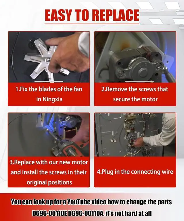 Easy to installEasy and fast installation, saving time,You can look up for a YouTube video how to change the parts DG96-00110E DG96-00110A, it's not hard at all