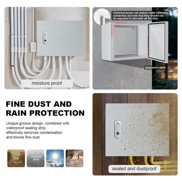 DUSTPROOF AND MOISTURE PROOF ELECTRICAL ENCLOSURE: The door frame of the electrical enclosure adopts a groove design, plus Sealing tape, Ensure that the electrical box has a certain degree of dust and moisture resistance, but cannot be exposed to rainwater