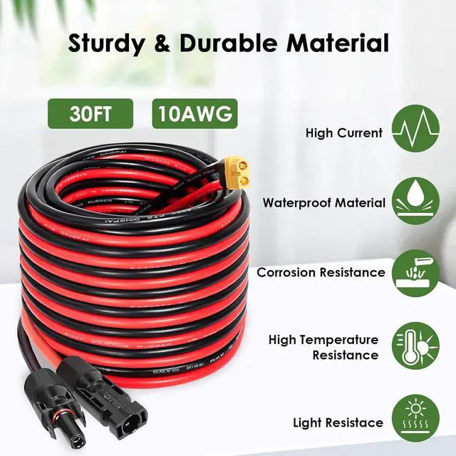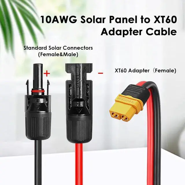 Excellent Conductivity -- This solar to xt60 charge extension cable use heavy duty 10awg tinned copper wire which ensures good electrical conductivity,good durability and flexibility,providing stable current for your device.