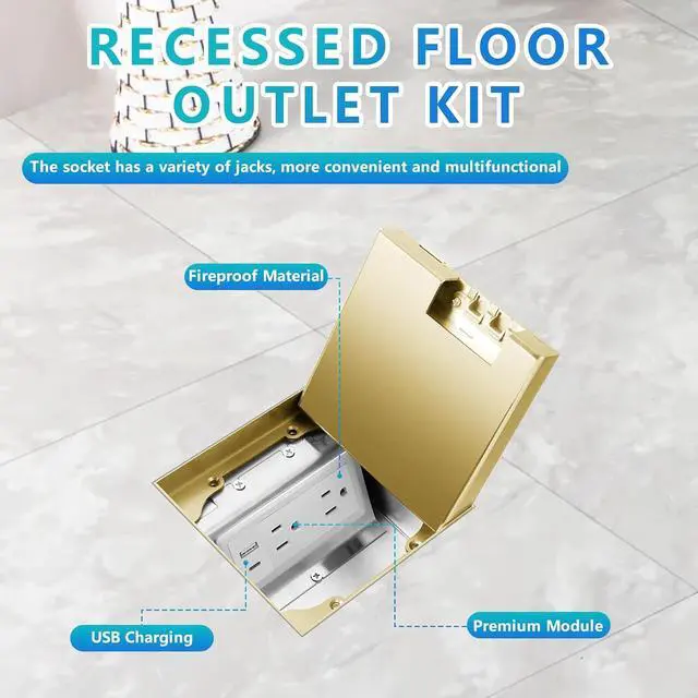Product composition: The recessed flat hidden socket kit includes a hard material top cover , 2*15A receptacle+5V 2.4A 1 USB-A Ports &1 USB-C Port USB charging ports