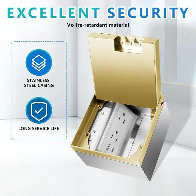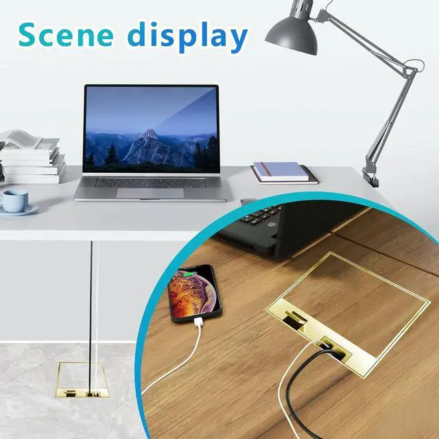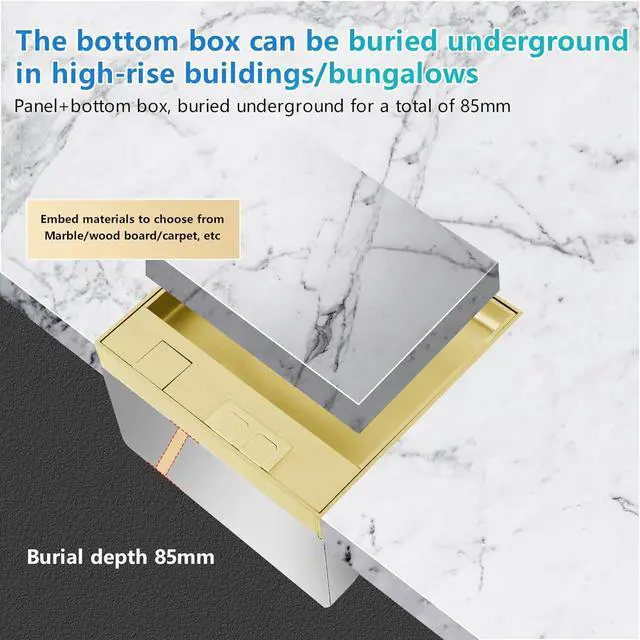 Applications:Panel + bottom box, buried in 3.35IN, panel embedded in own material (marble/wood/carpet, etc.)It can be installed in floor, countertop, deck, table, desk tops in kitchen, living room, office, public area, etc.
