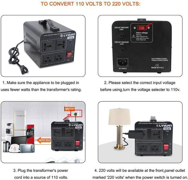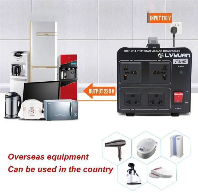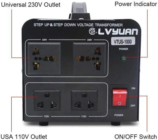 1000 Watts Step Up/Down Voltage Transformer Converter. Step Up Voltage from 110-120 Volts to 220-240 Volts. Step Down Voltage from 220-240 Volts to 110-120 Volts.