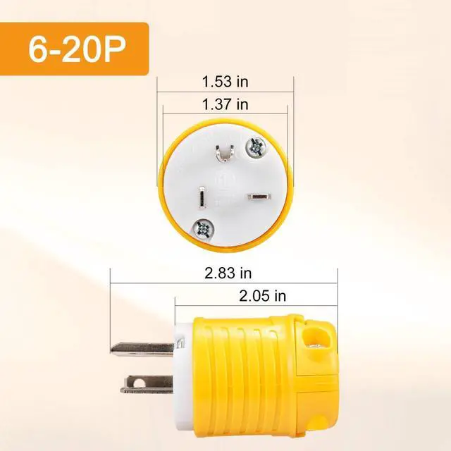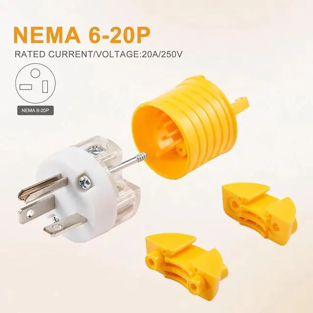 NEMA 6-20P replacement plug can be used to repair worn extension cords, replace damaged plugs, and extend the life of extension cords.