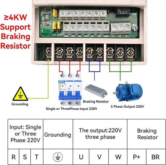 Importent Note This VFD does not surpport external resistor. If your motor is heavy load, pls choose a higher power level VFD or contact sales for model selection suggestion.The working environment is relatively humid, with water mist, water droplets or metal objects falling in, which will cause a short circuit