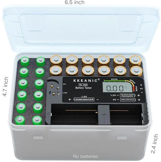 Smart Battery Organizer & Tester StorageHolds 20x AA + 12x AAA batteries Built-in tester compartment keeps everything secure and organized (no loose parts!)See batteries at a glanceTransparent lid allows quick checking without openingPerfect pairing with testerCombines battery storage, performance testing, and compact organization in one system.